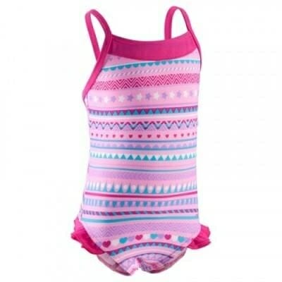 Designed for little girls discovering the joys of water in the pool or outdoors.Baby girl one-piece swimsuit with ruffles and spaghetti straps