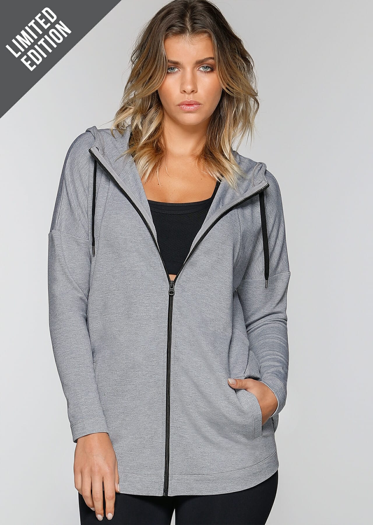 Fitness Mania – Warm Embrace Hoodie Designer Notes: This hoodie is the ultimate in functional urban design. Made of super stretchy fabric that is engineered for warmth and comfort, this hoodie can transition as a pre or post workout piece or great for travelling. Let’s Talk Tech: Limited edition Four-way stretch Fade resistantNeoprene How We Style It: Hit to the streets in style in these paired with the Power Shape Ankle Biter Tights and hightops. Got a Sunday coffee date? Sport these pants with the Never Be Lazy Tank for a casual