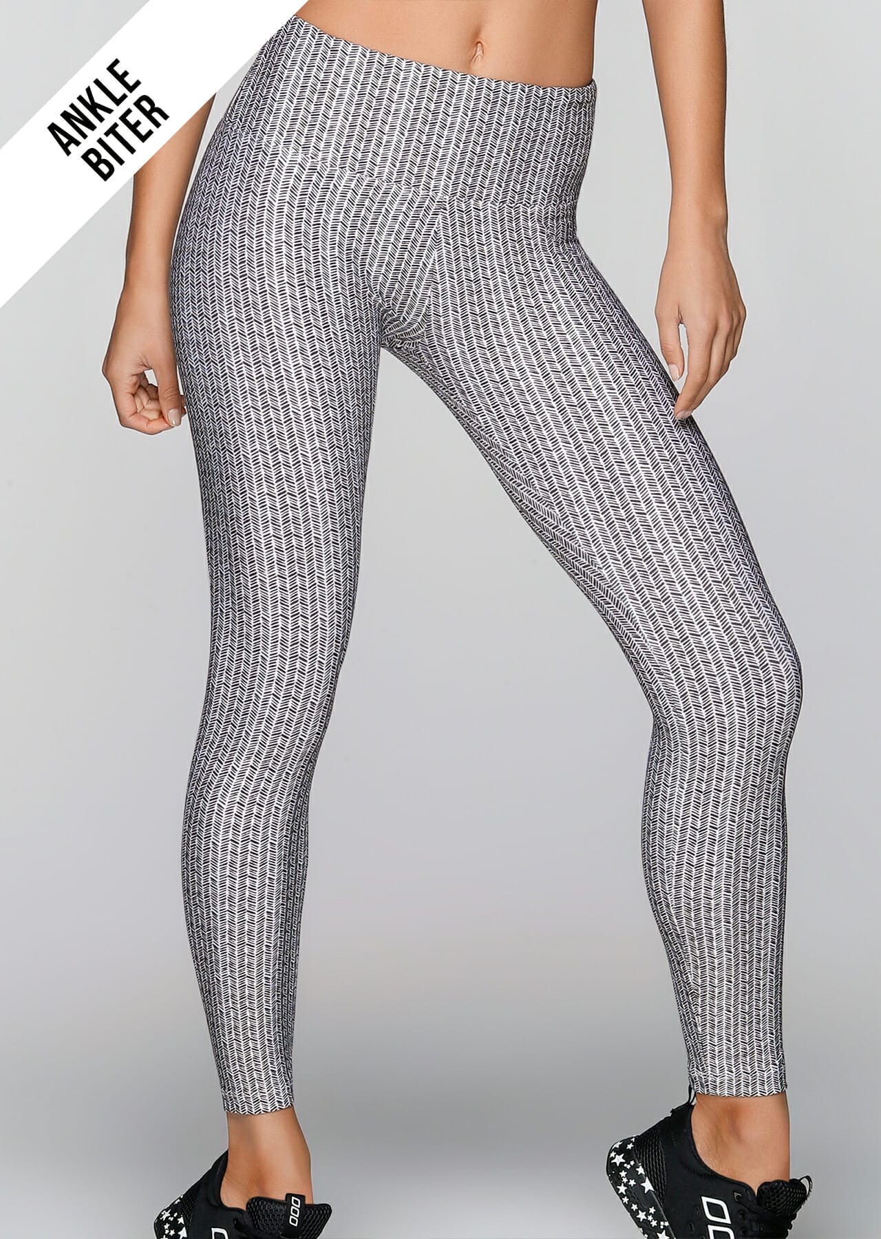 Fitness Mania – Herringbone Core A/B Tight Designer Notes: Fashion meets function in these ankle biter length tights. Designed to move with you, the active core stability waistband will keep your core engaged while the cool touch fabric is moisture wicking and quick drying. These anything but ordinary printed tights are perfect for burpees to box jumps! Let’s Talk Tech: Active core stabilityâ„¢LJ Excelâ„¢ Fabric Moisture wicking and breathable Hidden pocketQuick dryShrink and fade resistantDrawcord How We Style It: With your favo