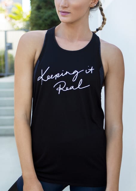 Fitness Mania – Keeping It Real Tank Designer Notes: Stay active and inspired in this relaxed-fit racer back tank. Designed in lightweight fabric and to be worn oversized, it makes for the perfect layering piece. Let’s Talk Tech: Two-way stretchLightweight fabricPerfect layering pieceHow We Style It: Wear over the Extraordinary Core 7/8 tights and Extraordinary Yoga Bra for a Yoga practice cover up. Show off the print of the Amazon Sports Bra under the drop arm holes at Pilates with your go-to LJ Tights. Wear with the Take Me Ankle