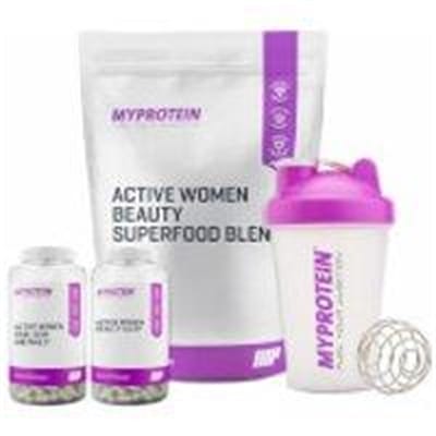 Description: We believe that true beauty starts from within, and we’ve got every active woman covered with our range of innovative beauty essentials to keep you looking and feeling your best. From lustrous hair, strong nails and vibrant skin to improving your beauty sleep, our latest bundle nourishes your body from the inside-out. Here’s what’s inside… Active Women Hair, Skin and Nails (30 caps) It’s a breakthrough supplement that’s bound to make you feel youthful, firm and healthy – with a unique blend of grape extract, melon extract, zinc and vitamin C. Blend of grape extract, melon extract, zinc and vitamin C Zinc contributes to the maintenance of normal hair, skin and nails Convenient daily capsules Active Women Beauty Superfood Blend (500g) Experience true beauty from within, with our-plant based formula designed to nourish and enhance your body from within. 100% natural ingredients Supports healthy hair, skin and nails Ready-to-shake formula Active Women Beauty Sleep (60 caps) Our soothing herbal blend of lemon balm and chamomile helping you maintain a healthy sleep, with added minerals to boost your beauty regime. Helps maintain a healthy sleep* Boosts your beauty while you sleep With soothing herbal extracts * Lemon balm helps maintain healthy sleep Active Women Mini Shaker (Pink) Keep your powered supplements deliciously smooth and lump-free with our classic, easy-to clean shaker. 400ml capacity Sealed drip-free design Unique wire blending ball