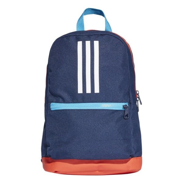 Fitness Mania – Adidas 3-Stripes Kids Training Backpack Bag – Collegiate Navy/Active Red/White Zip up and go with the Adidas 3-Stripes backpack bag? a just-right size for your kiddo. This flashy colourway with contrast Adidas 3-Stripes stands out from the pack at school. The rugged design with coated base can tackle your little one?s study in the classroom and playground adventures. It has a main compartment and front zip pocket to stash little treasures. Padded shoulder straps offer comfy carrying and an adjustable fit. The chest strap keeps it secure and steady on the move.