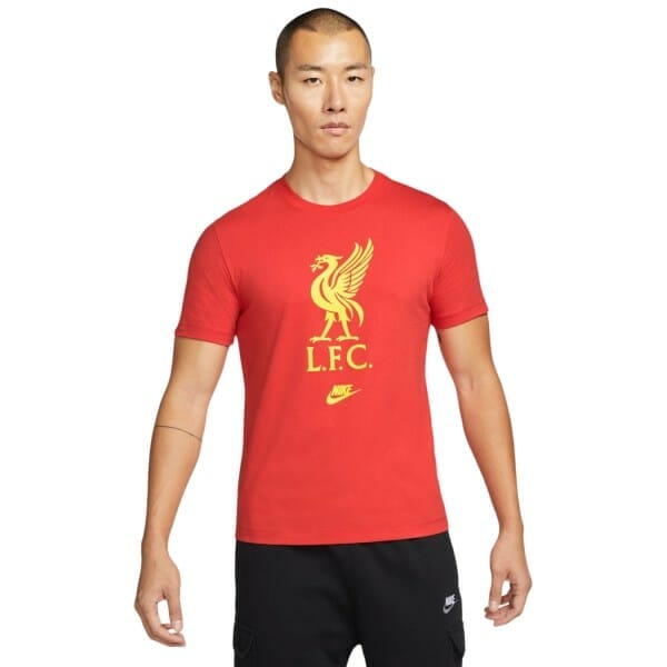 Fitness Mania – Nike Liverpool Future Crest Mens Soccer T-Shirt The Nike Liverpool Future Crest men’s soccer t-shirt ensures there’s no doubt of your team colours, with the vibrant red and gold combination that shouts out “Liverpool” without having to say a word. Made with lightweight cotton, it creates a soft touch against your skin and is an instant favourite for supporting your team on both laid-back or action-packed days. – Your smooth clash of Nike and Liverpool pride – Nike graphic shows off that you only wear the best in comfort – Head-turning gold Li