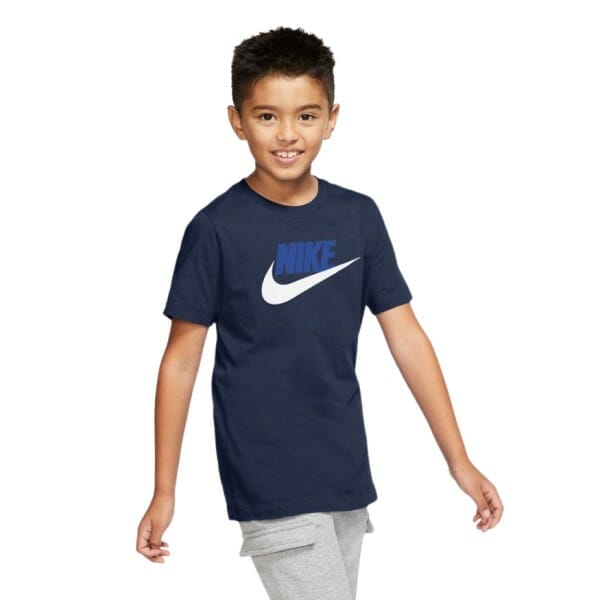 Fitness Mania – Nike Sportswear Cotton Kids T-Shirt The Nike Sportswear Cotton boys’ t-shirt is his everyday essential with sport-inspired style. The bold Nike graphic turns up the athletic vibes of his casual wardrobe. Soft cotton wraps your champ in comfort as he catches up with his crew or hits the streets. – No-fuss tee with a sporty look – Comfy crew neck – Iconic Nike graphic to turn heads – Soft touch – Standard fit for an easy wear style Fabric: 100% cotton