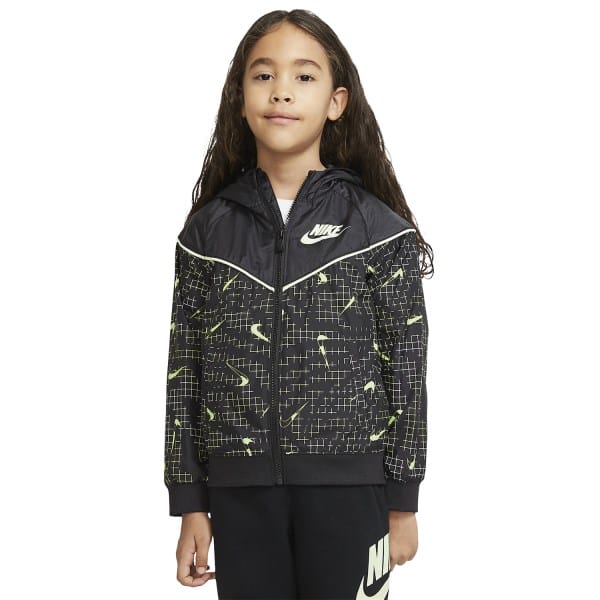 Fitness Mania – Nike Sportswear Windrunner Full-Zip Kids Jacket Lightweight coverage for everyday play, the Nike Sportwear Windrunner Full-Zip kids’ jacket is a fast favourite in your little athlete’s everyday rotation. It gives a nod to the iconic Windrunner with the chevron design to make a statement while your active kid fights off the elements. The Nike volt Swoosh gridded pattern on the body makes it no secret that your young champion only wears the best in comfort. With the water-repelling ripstop fabric, it’s their must-have layer against light rain y