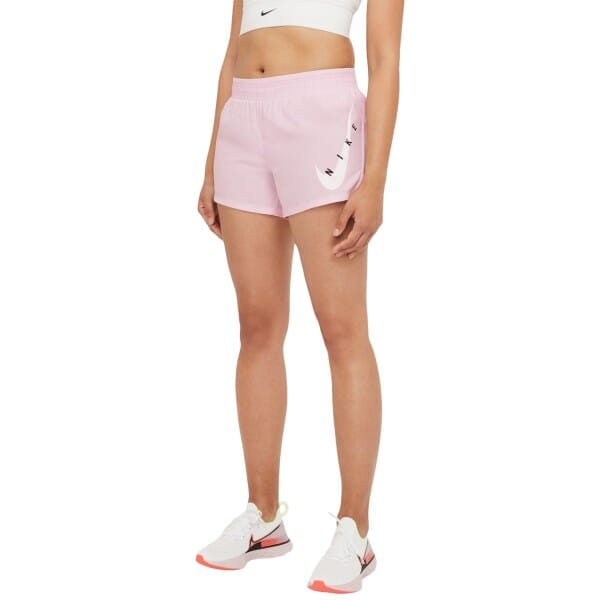 Fitness Mania – Nike Swoosh Run Womens Running Shorts A feel-good essential to stay on track of your training, the Nike Swoosh Run women’s running shorts fight off sweat in style. Dri-Fit technology ensures dry comfort for the long haul. The “NIKE” and Swoosh graphic creates a smooth contrast of glossy and matte details. The elastic waistband hugs snugly to your body in motion. You’ll reach your running goals with your essentials close at hand in the convenient pockets. – Total freedom for legs that love to move – Ideal coverage for warm weather wo