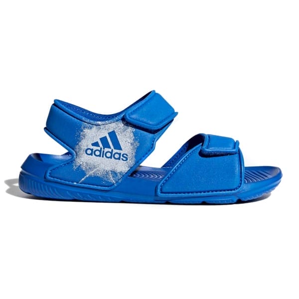 Fitness Mania – Adidas AltaSwim C – Kids Boys Sandals – Blue/Footwear White The Adidas AltaSwim boys? sandals are a fun and practical design for your little one to play by the beach or on dry land. Adjustable straps give tiny feet a secure fit, so he won’t lose a shoe in the waves. Whether he?s building sand castles or chasing seagulls, these sandals provide plenty of comfort for all his seaside adventures. Best of all, they are quick drying and drain water easily to keep his feet from dripping like an ice cream cone all day. The moulded EVA outsole allows your l