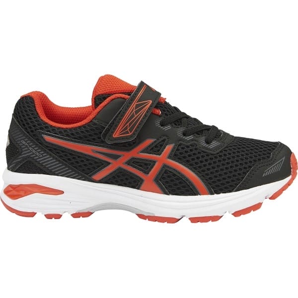 Fitness Mania – Asics GT-1000 5 PS – Kids Boys Running Shoes – Black/Vermilion/Carbon The Asics GT-1000 5 PS kids? running shoes have a cool and sporty look in a comfy ride for your active pre-schooler. A fun and lively shoe for everyday wear! The hook and loop closure makes it a little bit easier to get your cheeky kid ready in the morning. Your youngster gets a secure fit so the shoe won’t go flying off in the playground. These athletic shoes feature a reinforced stitched toe cap, Trusstic system technology and rearfoot Gel for cushioned comfort.