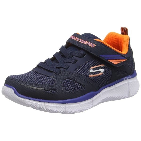 Fitness Mania – Skechers Equalizer Quick Race – Kids Boys Running Shoes – Navy/Orange Your active boy will zoom past the competition like his favourite sports car in the Skechers Equalizer Quick Race kids? running shoes. Built for comfort, these athletic kicks feature a Trubuck leather and mesh fabric upper to keep his feet in cool, dry and fresh conditions. Sweat won’t drag him down! He gets the perfect fit from the side adjustable hook and loop closure, making it that bit easier to get him ready for his next race. The Gel infused Memory Foam cushioned comfort insole makes