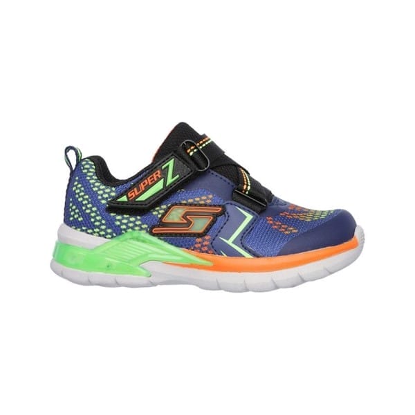 Fitness Mania – Skechers S Lights Erupters II – Toddler Boys Running Shoes – Navy/Multi The Skechers S Lights Erupters II toddler boys? shoes let your little athlete shine as he gets from A to B with colourful lights that take Skechers Erupters to a new extreme. He?ll love playing with the galaxy of colour on his feet and the super comfy design featuring mesh fabric panels and a quick and easy slip-on style. This casual sneaker is perfect for the youngest member of the family, featuring a stretch elastic laced front panel and hook and loop closure for a secure fit, so the shoe w