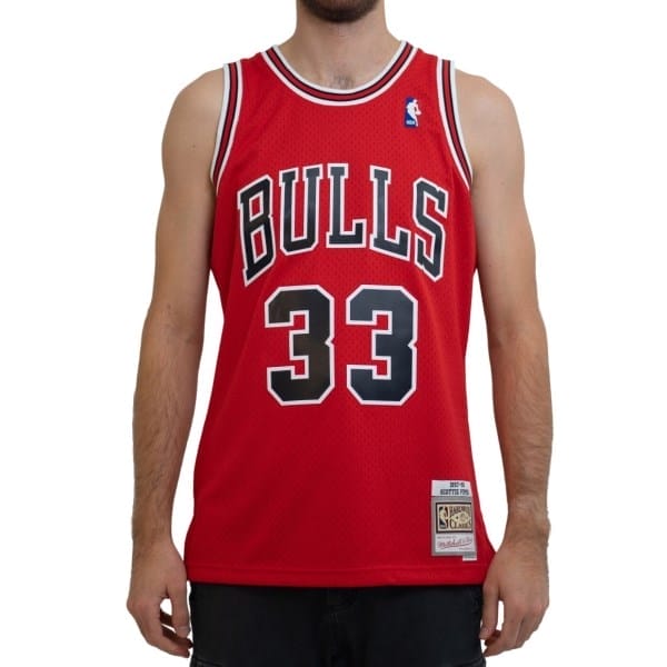 Fitness Mania – Mitchell & Ness Chicago Bulls Scottie Pippen 1997-98 NBA Swingman Mens Basketball Jersey – Red/Black Gear up in your heritage spirit with the Mitchell & Ness Chicago Bulls Scottie Pippen 1997-98 men?s basketball jersey, celebrating one of the most versatile and skilled players to grace the NBA. This official replica pays tribute to Pippen’s iconic style on the hardwood as he dominated the 1997-98 season to cement the legacy of the Chicago Bulls. Boasting a Chicago Bulls graphic and Pippen’s heat sealed number and name, this is an essential replica for true supporters. Made with performanc