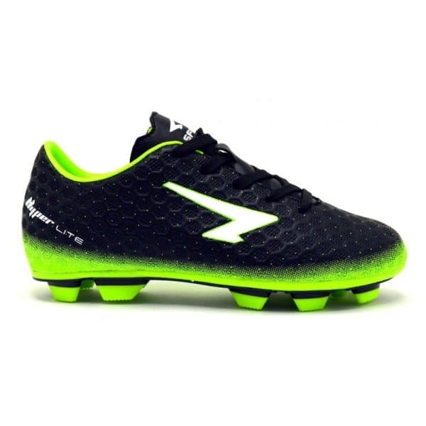 Fitness Mania – Sfida Sting – Kids Boys Football Boots – Black/Lime Your little legend will fly down the pitch like a pro with the Sfida Sting kids? football boots, featuring a HyperLite synthetic upper to keep growing feet energised. The removable insert provides a cushioned feel and the TPU outsole creates a resilient and durable footy boot that can withstand tackles and tumbles without being worse for wear. – Electrifying colourway for your cool kiddo – HyperLite synthetic upper for lightweight durability – Removable insert for optimal cushioning – TP