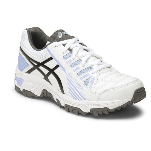 Fitness Mania – Asics Gel Trigger 11 GS – Kids Girls Cross Training Shoes – White/Onyx/Blue Bell The Asics Gel Trigger 11 GS kids? cross training shoes are perfect for little athletes that don’t stop moving and love getting into sports like touch football, cricket and hockey. Your sports star will love the reflective elements for staying visible when she plays a round of evening cricket or whatever adventures she gets up too. The comfy sockliner moulds to your little one’s natural foot shape for a great fit and can be replaced with a medical orthotic if needed. She gets excellent stabi