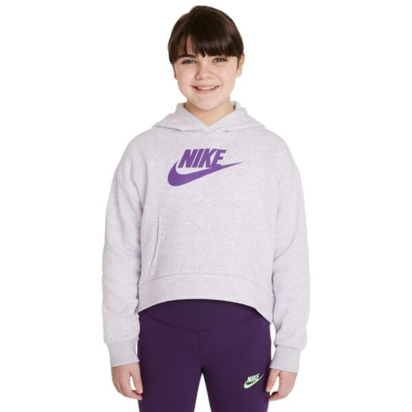 Fitness Mania – Nike Sportswear Club Fleece Kids Girls Hoodie – Purple Chalk/Heather/Wild Berry An ultra-soft touch meets Nike’s iconic style in the Nike Sportswear Club Fleece kids? hoodie. The lightweight fleece turns frosty weather into your young champion’s winter wonderland – motivating them to stay active. A relaxed fit make it an easy choice for low-key weekends and everyday play. Hooded coverage, ribbed cuffs and hem keep them toasty warm. The front pocket provides a cosy home for cold hands during urban adventures. – Winter-ready warmth in a lightweight design – Super cosy a