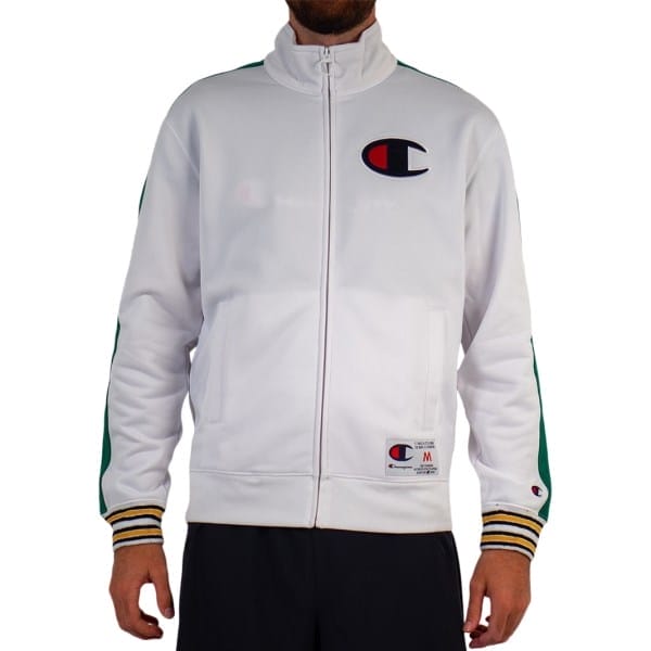 Fitness Mania – Champion EU Baskity Mens Jacket – White The Champion EU Baskity men?s jacket is your bold cover-up between workouts. A high neck, long sleeves and ribbed cuffs provide coverage against the elements without compromise to the athletic style. An oversized Champion ‘C’ logo on chest and arching ‘Champion’ graphic on back ensures your passion for sport is no secret. – Champion branding celebrates your favourite sportswear brand – Contrast sleeve stripes for a sporty look – Full zip closure – Front pockets for convenient storage – Sn