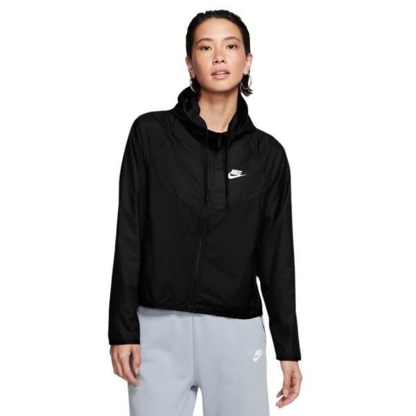 Fitness Mania – Nike Sportswear Windrunner Womens Running Jacket – Black The Nike Sportswear Windrunner women?s running jacket wraps you in water-repellent protection and the heritage vibes of Nike?s 1978 Windrunner jacket. It gives a nod to the iconic Windrunner with the chevron design to make a statement while you fight off the elements. A panelled hood and lengthened back hem provide coverage that counts when the rain clouds roll in. Side pockets let you stash away valuables safely. – Throw on a flashback – ?70s-inspired style of the original Nike Windrunner,