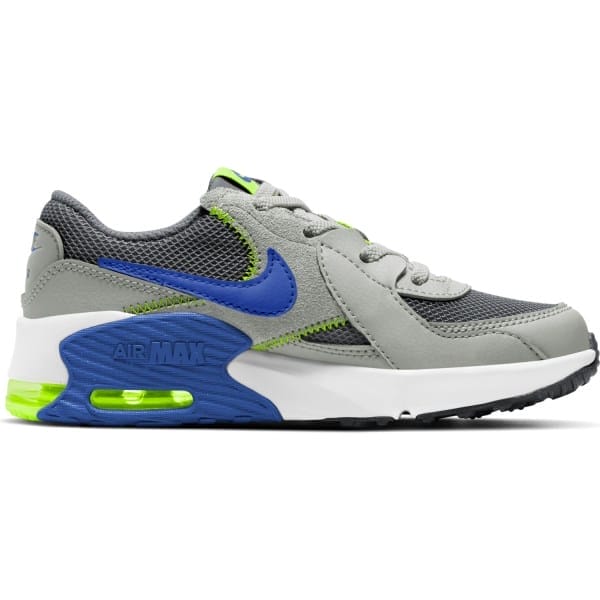 Fitness Mania – Nike Air Max Excee PS – Kids Sneakers – Iron Grey/Game Royal/Grey Fog Volt The Nike Air Max Excee kids? sneakers now come in a size just-right for the tiny feet of the family. They revamp the popular Air Max 90, setting your little legend up with? 90s throwback style with a fresh twist. Wrapping growing feet in a low-top profile, the Air Max Excee features a fusion of textures and materials like natural and synthetic leather. It?s a durable yet breathable ride thanks to the airy mesh and the bold stitching adds a crafty design element. The Max Air unit cradles th