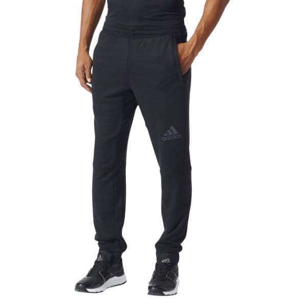 Fitness Mania – Adidas Workout Mens Training Pants – Black The Adidas Workout men?s training pants are your everyday essential for combating sweat. Train like a pro with the moisture-wicking Climalite fabric allowing you to tackle more reps without sweat pulling you out of the zone. They deliver a secure fit and won’t shift out of place when you hit up the intensity of your workout thanks to an elastic waist with drawcord and ribbed cuffs. Stash your keys, cash or whatever you need at the gym in the zip pockets. – Tapered training pants – Moist