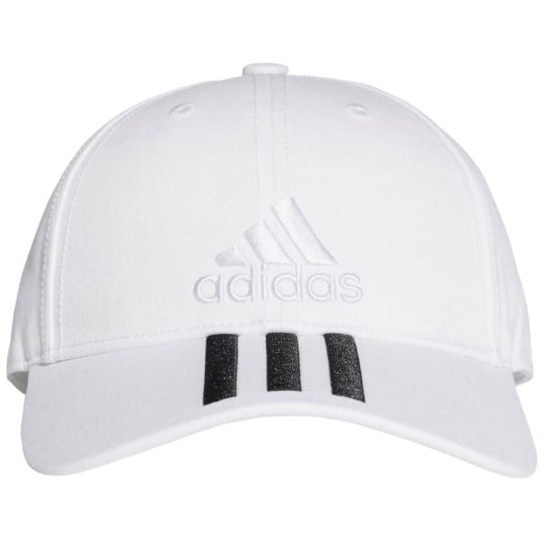Fitness Mania – Adidas Six-Panel Classic 3-Stripes Adult Training Cap – White/White/Black The Adidas Six-Panel Classic 3-Stripes training cap is your go-to for an outdoorsy lifestyle, providing sun protection and preventing sweat from interfering with your good vibes. The Adidas logo and embroidered 3-stripes gives your workout or casual wardrobe a sporty boost. Climalite fabric sweeps sweat away from your skin, so you never have to deal with that sticky, clammy feeling under your cap. It?s easy to get an ideal fit with the adjustable strap-back closure. UPF 50+ UV protection