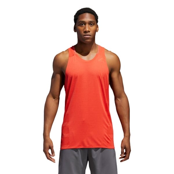Fitness Mania – Adidas Supernova Mens Running Singlet – Orange/Hi-Res Red The Adidas Supernova men?s running singlet keeps you dry during intense sweat sessions. Climalite moisture-wicking fabric controls perspiration so you can focus on performance. It?ll never weigh you down and feels soft against your skin for comfortable motion. Run naturally with the slim fit and racerback style for unrestricted arm movements as you sprint or tackle reps at the gym. – Lightweight performance singlet – Climalite fabric draws sweat away from your body to keep you dry and fresh