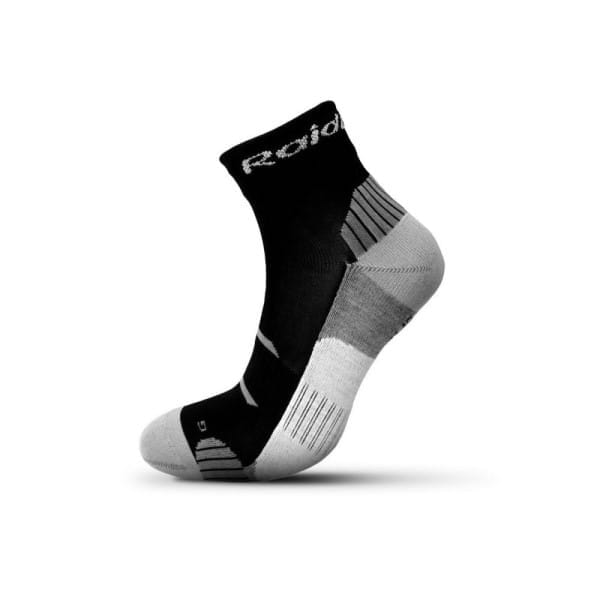 Fitness Mania – RaidLight Thin R-Light Running Socks – Black Socks are a key element of comfort in running. The thin R-Light socks are simple but really effective. Very light and breathable, they are so comfortable you will forget you are wearing them, allowing you to focus on your run. The heel, insole and the tip are made from polyamide for more strength. Weight: 40g. Made in France.