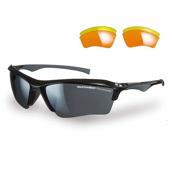 Fitness Mania – Sunwise Odyssey Sports Sunglasses – Black The Odyssey Sports sunglasses are part of Sunwise’s sports and outdoors interchangeable range. Available in Piano Black frames these sports sunglasses come with a pack of three interchangeable polycarbonate high definition, lightweight and shatter proof lenses in the following colours: – Yellow – Orange – Smoke Mirror (dark colour lens) The lightweight versatile half-frame design means you have obstruction free peripheral vision and the very best visibility for all sorts of sporting and leis
