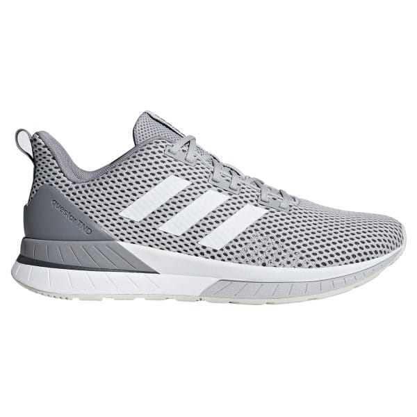 Fitness Mania – Adidas Questar TND – Mens Running Shoes – Grey/White The Adidas Questar TND men?s running shoes are the perfect match for a neutral running style and will have you zooming ahead of the competition in a flash. It features a breathable mesh upper, modern look to turn heads and OrthoLite sockliner for maximum comfort. Elevate your ride with responsive take offs and a supportive fit from heel to toe. Glide smoothly like you’re running on clouds with Cloudfoam. The TND dual-density midsole provides plush cushioning for soft landings. The rubber