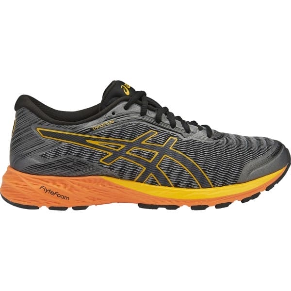 Fitness Mania – Asics DynaFlyte – Mens Running Shoes – Carbon/Black/Citrus Run on a galaxy of colour with the eye-catching look and extreme comfort of the Asics DynaFlyte men?s running shoes. These sporty machines are a paradox and that?s why you?ll love them. You get unrivalled durability without the shoes weighing on you like a tonne of bricks. What?s Asics secret? It?s the FlyteFoam technology that teams up with super fibres to produce a feather-light design with the tough edge to go the extra mile. The ComforDry Lasting gives you luxury on the move like runnin
