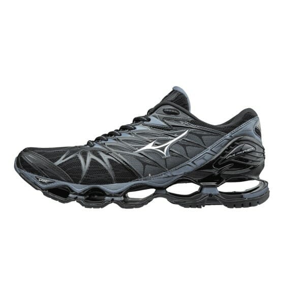 Fitness Mania – Mizuno Wave Prophecy 7 – Mens Running Shoes – Black/Grey The Mizuno Wave Prophecy 7 men?s running shoes feature an AIRmesh upper for a breathable, lightweight ride that hugs your feet in plush comfort and offers a fast feel for your runs. You’ll love lacing up in this running shoe that ignites your runs from dusk till dawn with reflective elements for safety and style. Mizuno describe your new secret weapon as having? suspension-like? cushioning. The Infinity Wave extends from heel-to-toe for an energy-returning ride and lively rebound to spring y