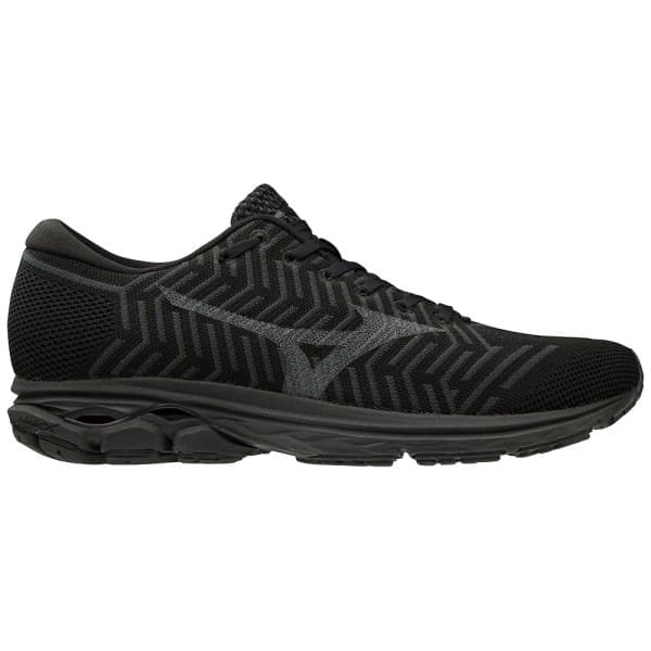 Fitness Mania – Mizuno WaveKnit Rider R2 – Mens Running Shoes – Black/Jet Set Your ultimate companion for moving in comfort, the Mizuno WaveKnit Rider R2 men?s running shoes feature a WaveKnit upper that hugs snugly to your foot for a natural, glove-like fit. These neutral running shoes keep your feet feeling light, free and supported with a knitted upper construction and engineered mesh for breathability. Mizuno have built them on an identical sole to their popular Wave Rider 22, so there?s no need to strap giant springs to your feet to fly over the pavement? the re