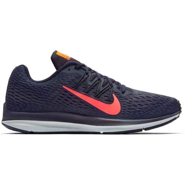 Fitness Mania – Nike Zoom Winflo 5 – Mens Running Shoes – Blackened Blue/Flash Crimson The Nike Zoom Winflo 5 men?s running shoes let you flow through your sweat session like you’re running on air, featuring an engineered mesh upper for breathable comfort and sock-like fit for a natural feel. This lightweight and supportive design locks your foot securely in place with a Dynamic Fit system that puts Flywire cables into action. Don’t let sore feet squash your good running vibes. Nike have you covered with the Nike Zoom Air unit and Cushlon Crash Rail for cushioned comfort, respo