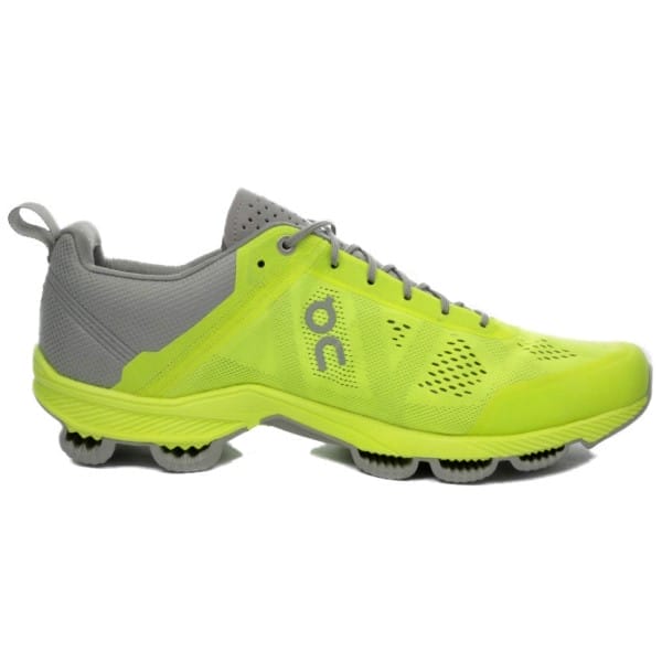 Fitness Mania – On Cloudsurfer 2016 – Mens Everyday Running Shoes – Neon/Grey Equipped with On?s patented CloudTec system, the Cloudsurfer is light, agile and excellent at transforming running energy into forward momentum, for high performance training runs and competitions. Fast feels good: the adaptive sole balances every step and activates your postural muscles. The Cloudsurfer intelligently combines what conventional running shoes have failed to unite: a cushioned landing and a barefoot takeoff. Runner profile: All types of runners looking for a cushioned yet highly