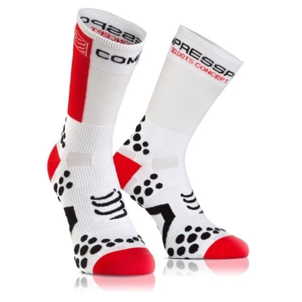 Fitness Mania – Compressport Cycle Socks – White/Red The Compressport Performance Cycle Socks are a must have for all Cyclists! Inbuilt with unique 3D.DOTS – these dots act as shock absorbers, cushioning the impact on your feet while also providing better grip inside your shoe, better blood circulation and Achilles/Heel protection. The New Compressport Cycle socks have an extra high cut for professional look and feel. Unlike the Run Socks, these Cycle Socks have extra ankle ventilation and hemless layer for extra support and comfort. They are a
