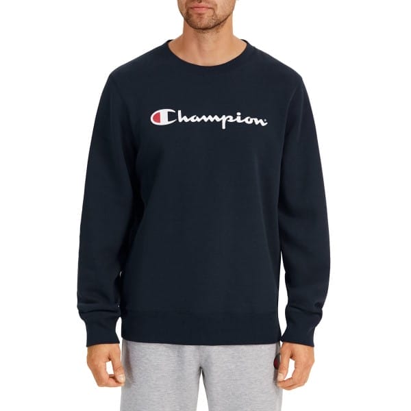 Fitness Mania – Champion Script Crew Mens Casual Sweatshirt – Navy The Champion Script Crew men?s casual sweatshirt is your go-to for chilling out post-workout, catching up with your mates or keeping cosy on the weekend. Unless you want to look like a cuddly polar bear, any old sweat just doesn?t cut it. Don’t sweat it? with the Champion logo and athleisure vibes, your new favourite sweatshirt is the boost your casual wardrobe needs. Treat yourself to the ultra-soft cotton blend for supreme comfort. It features ribbed sleeve cuffs and hem for a snug feel