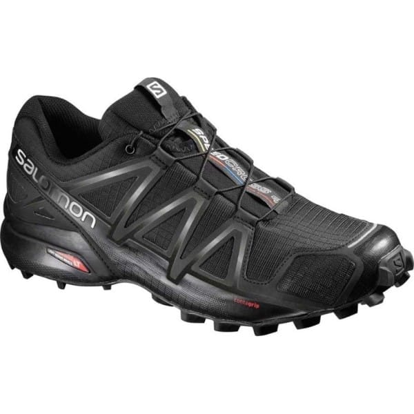 Fitness Mania – Salomon Speedcross 4 Wide – Mens Trail Running Shoes – Black/Black Metallic The Salomon Speedcross 4 men?s trail running shoes are built to tackle the harshest of terrain so adventure seekers can go the extra mile. The 2E wide width is fresh off the shelf to accommodate trail blazers with a wider foot type. The lace pockets are great for stashing your laces? a must-have to prevent trips and slips when you?re being chased by a pack of wild koalas (because that totally could happen!). Stay dry on the move with the water-resistant synthetic upper materials so you nev