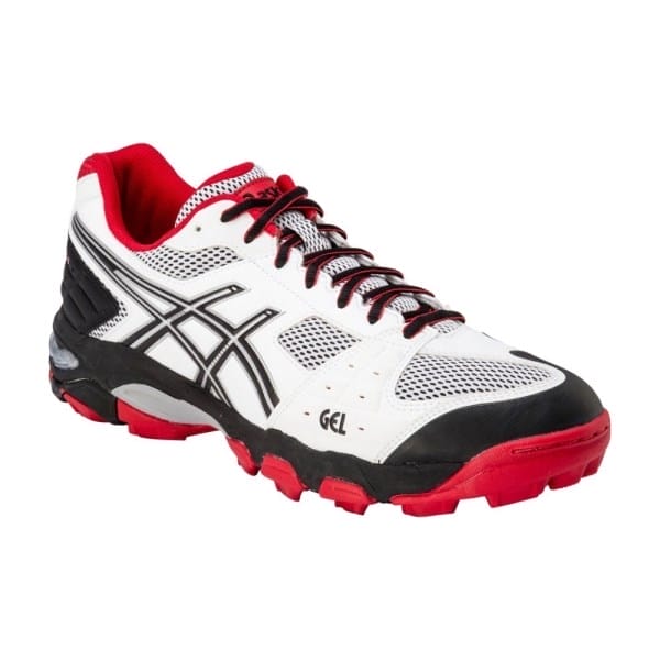 Fitness Mania – Asics Gel Blackheath 4 – Mens Hockey Shoes – White/Red The Asics GEL Blackheath 4 is a lightweight and breathable hockey shoe. Boasting a new outsole configuration that has a multi-studded appearance with an increased number of lateral forefoot flex grooves for increased flexibility during propulsion. Tough and durable P-Guard combined with a wrapped and stitched forefoot outsole helps the shoe to withstand the wear and tear associated with toe drag. Asymmetrical Lacing Anatomically correct lacing environment that reduces irritation and provides i