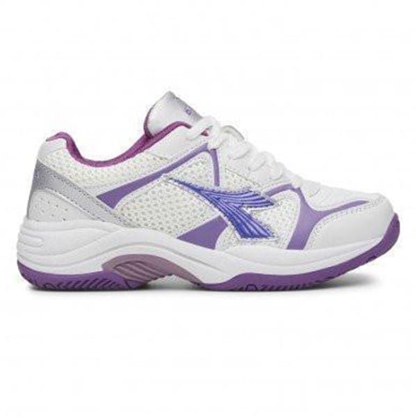 Fitness Mania – Diadora Miss Match – Womens Netball Shoes – White/Purple The Diadora Miss Match women?s netball shoes are crafted for court-specific stability and wrap your feet in an airy mesh upper for lightweight comfort. A plush midsole dampens impact forces? allowing you to tackle repetitive jumping and the stop-start motion of your sport without fatigue setting in. A medial stabiliser provides control and stability as you dart between the opposition and the hard-wearing rubber outsole is tough to tackle outdoor play. – Lightweight netball shoes to elevate