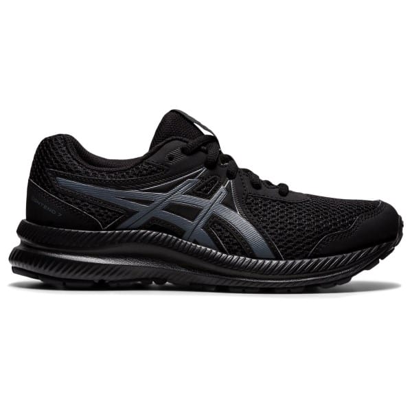 Fitness Mania – Asics Contend 7 GS – Kids Running Shoes – Triple Black/Carrier Grey Kick-start your little legend?s passion for fitness with the Asics Contend 7 kids? running shoes that elevate comfort with an airy mesh upper for cool air flow. An EVA midsole transforms hard impacts into softer landings? so they can run and play for longer without fatigue setting in. A durable rubber outsole with a flexible forefoot make these running shoes your budding athlete?s go-to for gliding over the pavement or ruling the playground. – Breathable mesh upper keeps growing feet cool