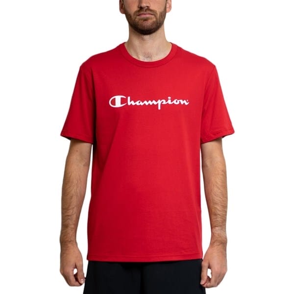 Fitness Mania – Champion Script Mens Short Sleeve T-Shirt – Cherry On Top The Champion Script men?s short sleeve t-shirt combines laid-back vibes and classic comfort, modernised for everyday wear. The printed script shows off your Champion spirit for all-day style. Wrapping you in soft cotton, this sporty tee takes the hassle out of what to wear when comfort is your priority. – Iconic Champion look couples with all-out comfort – Champion script logo to celebrate your sport-inspired style – Soft cotton touch – Regular fit Fabric: Cotton, exclusive of trims