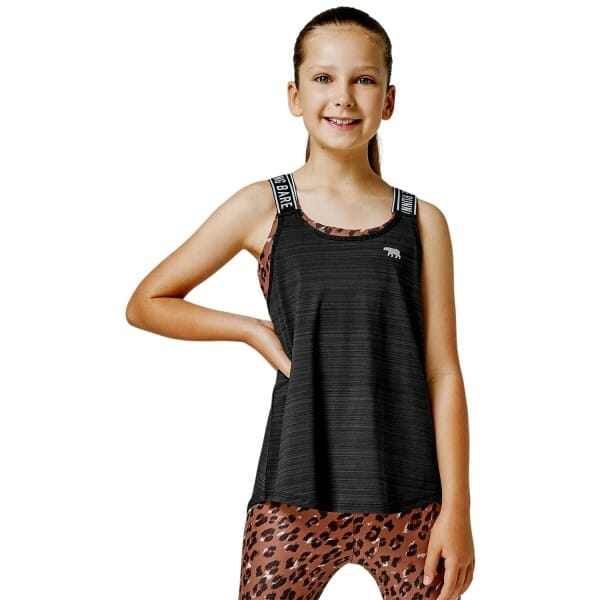Fitness Mania – Running Bare Cosmic Kids Girls Training Tank Top – Black The Running Bare Cosmic girls? training tank top is the perfect mash up of sports luxe style and high tech performance for low to high impact workouts. Whether your young champion is running on the pavement at full pelt or unwinding at dance or yoga class, this? do-it-all? workout tank has her covered. Airy Cosmic fabric sweeps moisture away from your little athlete?s skin, making this sporty gem a sweat session essential. Her best workout tank features a textured heathered finish and irrit