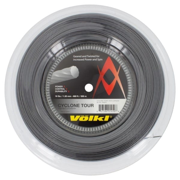 Fitness Mania – Volkl Cyclone Tour Tennis Reel 200m The Volkl Cyclone Tour tennis reel is an energetic option for big hitters and compared to the original Cyclone it delivers a softer response. This co-poly is perfect for the tour and is ideal for the advanced player seeking high playability, enhanced power and comfort. It features the same gear shape that makes the Cyclone a spin machine, but with twisting for enhanced ball bite.
