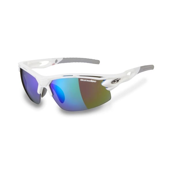 Fitness Mania – Sunwise Vertex Optics Sports Sunglasses + 4 Lens Sets – White The Sunwise Vertex Optics sports sunglasses are your go-to for any activity under the sun all-year round. They offer lightweight eye protection with a sleek, sporty profile and deliver high optical clarity for clear, unobstructed vision. The wrap-around style provides essential coverage to shield out the sun?s harmful ultraviolet rays. Air-Flow technology ensures ventilated comfort for high speed activity and intense sports. Tackle all lighting conditions even as the weather changes with