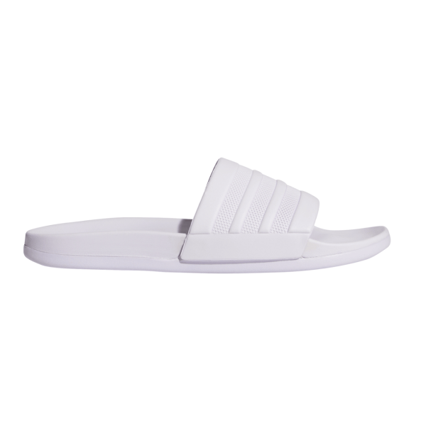 Fitness Mania – Adidas Adilette Comfort – Womens Slides – Purple Tint The Adidas Adilette Comfort women?s slides are your go-to for chill out sessions and treating your feet to cloud-like comfort on the move. This lightweight ride features a single-bandage upper for classic styling and quick and easy slip-on fit. The 3-stripes give you a sporty, monotone look to make your casual wardrobe pop. The Cloudfoam Plus footbed provides a plush, cushioned feel to re-energise and rejuvenate your hard-working feet. You get just-right traction in a lightweight package f
