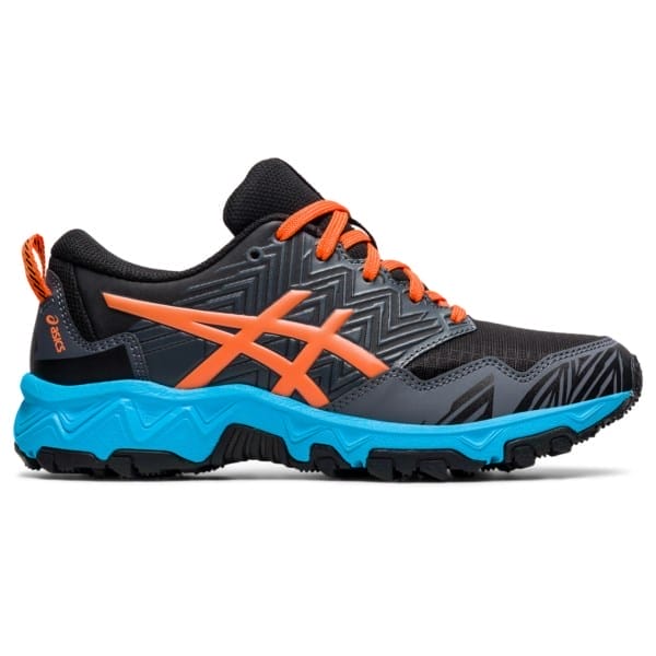 Fitness Mania – Asics Gel Fuji Trabuco 8 GS – Kids Trail Running Shoes – Black/Marigold Orange The Asics Gel Fuji Trabuco 8 kids? trail running shoes deliver off-road stability for your young adventurer to conquer the outdoors. A rock protection plate and mud guard deliver the protection your kid needs to navigate challenging terrain. Shock-absorbing rearfoot Gel dampens impacts to ward off fatigue on their next big adventure. The full ground contact midsole creates a stable platform to help your kid maintain solid footing. The DuoMax support system stabilises their growing feet on
