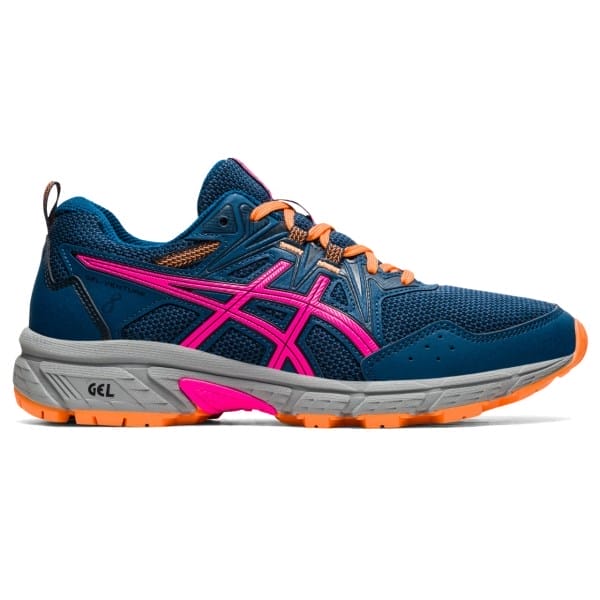 Fitness Mania – Asics Gel Venture 8 – Womens Trail Running Shoes – Mako Blue/Pink Glo The Gel-Venture 8 Trail running shoe is designed for the great outdoors. This versatile shoe is excellent for trail runs, light hiking or exploring a new city. This model has been updated with a more accommodating forefoot fit, while reducing the amount of overlays around the forefoot without sacrificing durability. Lastly, the outsole is more durable with a traction pattern that’s been improved with re-engineered lugs under the heel. All of these updates make the new Gel-Venture 8 a recommend