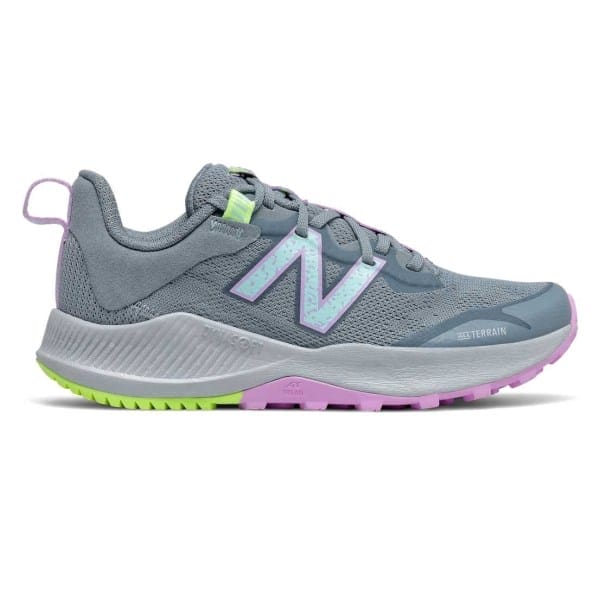 Fitness Mania – New Balance Nitrel v4 – Kids Trail Running Shoes – Grey/Pink The New Balance Nitrel v4 kids? trail running shoes are designed for adventurous little feet to run and explore off-road with an even softer feel than the previous version. The closed textile upper allows them to enjoy nature without it getting into their shoe. Asymmetrical seaming prevents debris from entering, so they can switch from road to trail without distractions. Updated with Dynasoft cushioning for extra plushness underfoot, these trail shoes keep them protected as they get closer t