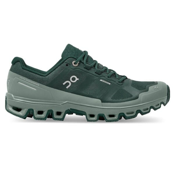 Fitness Mania – On Cloudventure Waterproof – Womens Trail Running Shoes – Juniper/Sea The On Cloudventure Waterproof women’s trail running shoes are your ultimate partnership for driving up the altitude while keeping your secret weapons? your feet? dry and protected when storm clouds let loose. The 100% waterproof design makes these off-road adventurers ideal for crushing mountainous climbs in tough, wintry conditions? without rain weighing you down or sinking your plans. Zero-Gravity Cloud elements allow you to conquer challenging slopes with protective cushioning, parti
