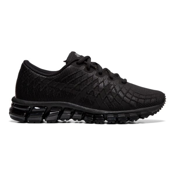Fitness Mania – Asics Gel Quantum 180 4 GS – Kids Boys Training Shoes – Triple Black The Asics Quantum 180 4 kids? training shoes are your little legend?s modern, sport-inspired ride to show off their active lifestyle on the move. A head-turning upper pattern boosts the contemporary vibes of their workout wardrobe and transitions smoothly between their everyday activities. The mesh upper allows growing feet to breathe, whether they?re dashing for the school bus or catching up with their best mates on the playground. This springy, shock-absorbing ride features Gel in the re