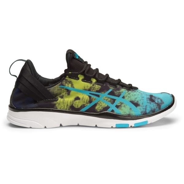 Fitness Mania – Asics Gel Fit Sana 2 Graphic – Womens Training Shoes – Black/Aquarium/Neon Lime The Asics Gel Fit Sana 2 women?s training shoes have a stretchy mesh upper for comfort and a secure glove-like fit so your shoe won’t go flying when you’re pounding on the pavement. With a lightweight design that feels like running bare, these training shoes are perfect for your run, the gym or however you love to get active. You get adaptive support in specific zones where you need it most thanks to the Flexible Fit system featuring support bands. The AHAR Ride+ mirrors the awesome tracti