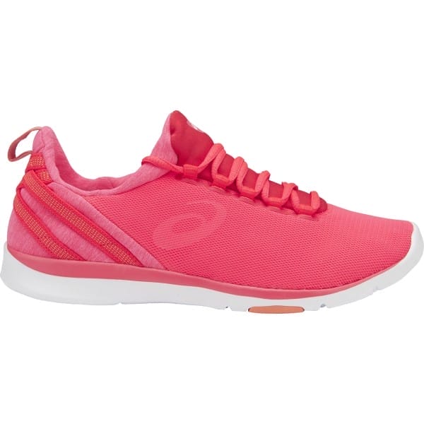 Fitness Mania – Asics Gel Fit Sana 3 – Womens Training Shoes – Diva Pink/White/Melon The Asics Gel Fit Sana 3 women?s training shoes are your go-to kicks for light cross-training and studio workouts – the perfect blend of style and comfort. The mono-sock fit system provides an elastic internal sleeve for a personalised, glove-like fit in the place of a traditional tongue. Nobody wants irritation and chafing stealing their focus, but no worries because these sporty machines have a seamless construction for premium comfort. You?ll love the multi-directional flexibility and a